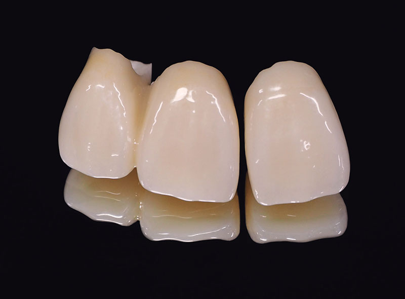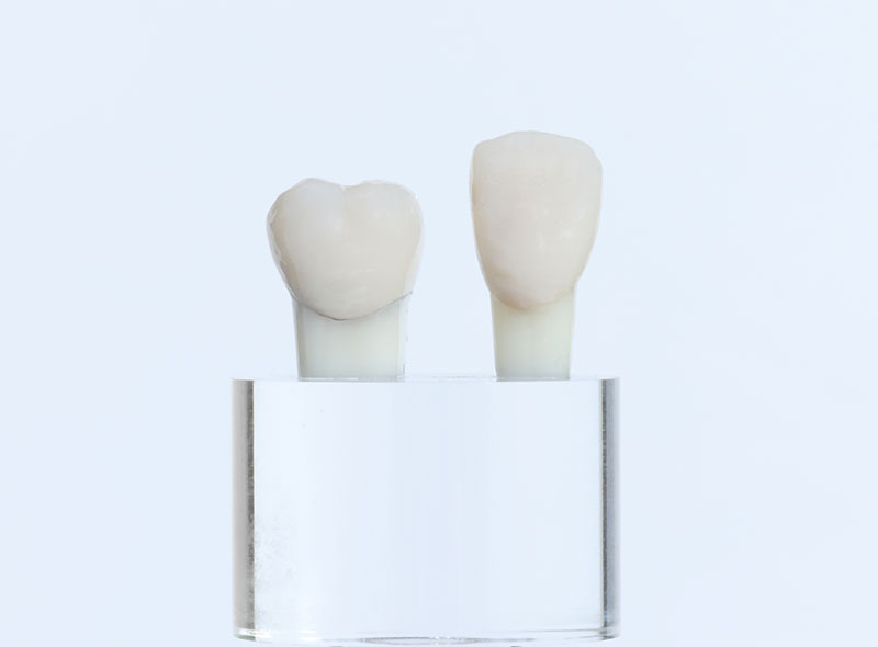 ・審美性を確保するために十分な厚みが必要となり、銀歯に比べて歯を削る量がやや多くなります。 ・金属を使用しないため透明感がありますが、強い衝撃や過度な咬合力で欠けたり割れたりすることがあります。 ・ブリッジなど、長い連結が必要な箇所には強度の問題で使用できない場合があります。 |