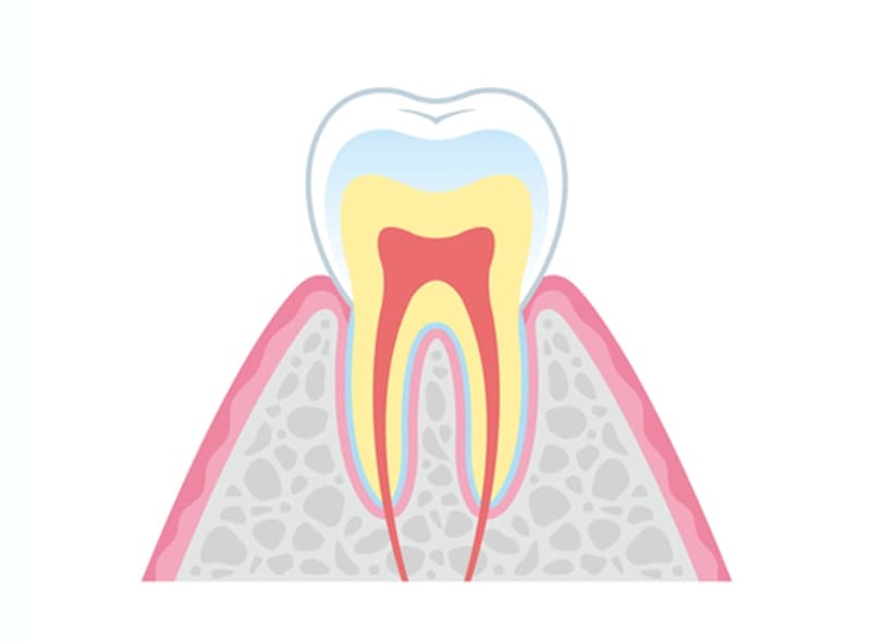 むし歯が象牙質に侵入すると、細菌は歯髄に近い部位まで到達します。象牙質は神経との距離が近いため、温度変化などの刺激に敏感になります。この段階では、細菌に感染した歯質を的確に除去し、適切な修復材料で歯を保護することが重要です。