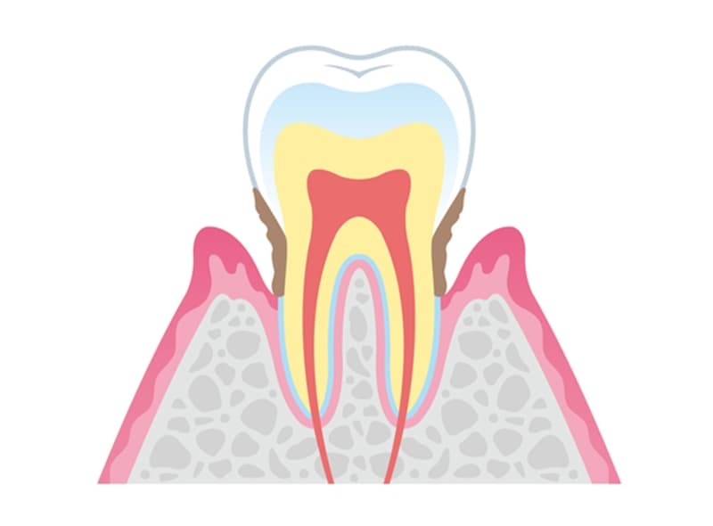 歯肉に軽度の炎症が生じ、歯磨き時に歯肉から出血することがあります。歯と歯肉の間には歯周ポケットが形成され、歯垢や歯石が付着しやすくなります。