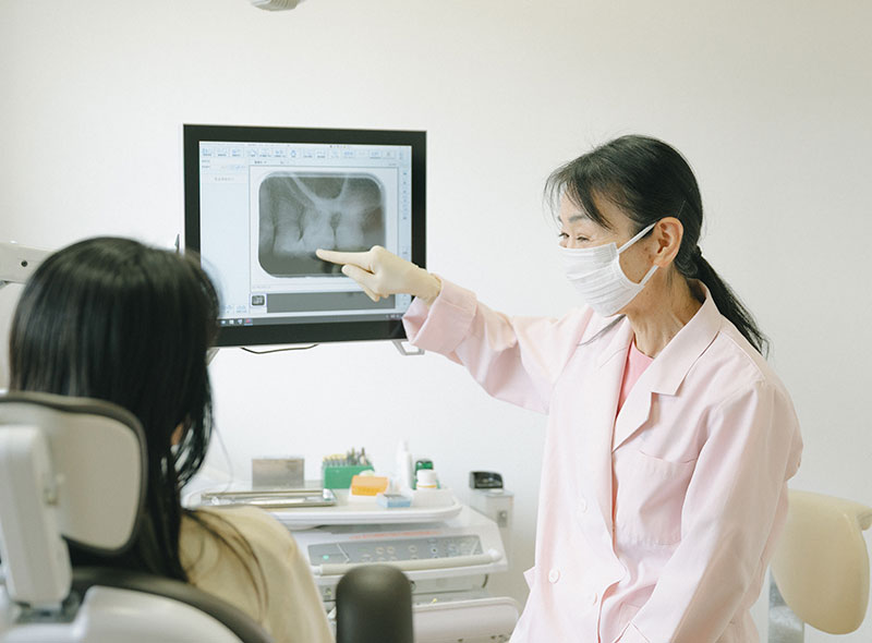 むし歯は、食べかすや磨き残しなどによりお口の中で細菌が繁殖し、歯を溶かしてしまう病気です。風邪のように自然に治ることはなく、放っておくと進行して痛みが強くなり、最終的には歯を失うことにつながることもあります。早めに受診し、適切な治療を受けることが大切です。さらに、むし歯は細菌による感染症でもあるため、ご家族など身近な方への感染にも注意が必要です。