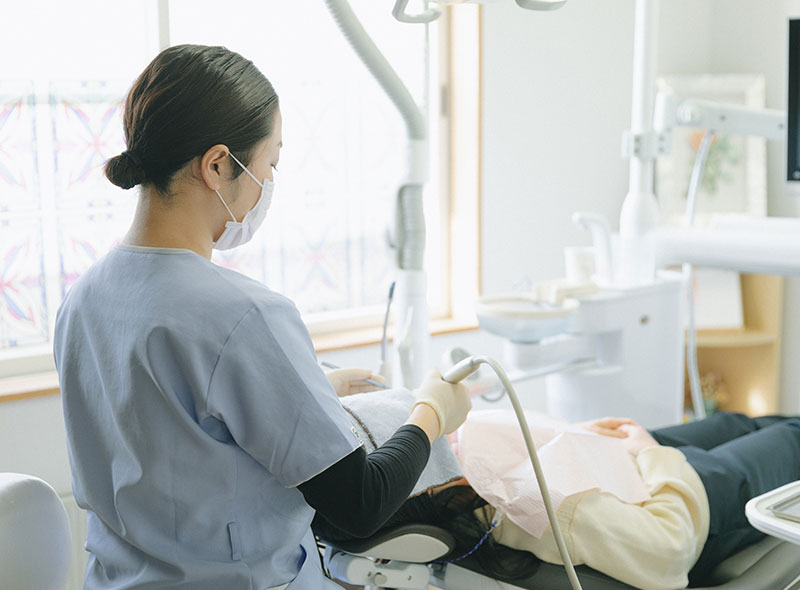 プラークが石灰化してできた歯石は、ブラッシングでは除去することができません。そこで、歯科衛生士が専用の器具を使って歯石を取り除く処置がスケーリングです。歯石は細菌のすみかになるため、定期的な除去が口腔内の健康維持に欠かせません。当院では、患者様の口腔内の状態に合わせて、適切な間隔でのスケーリングをおすすめしています。